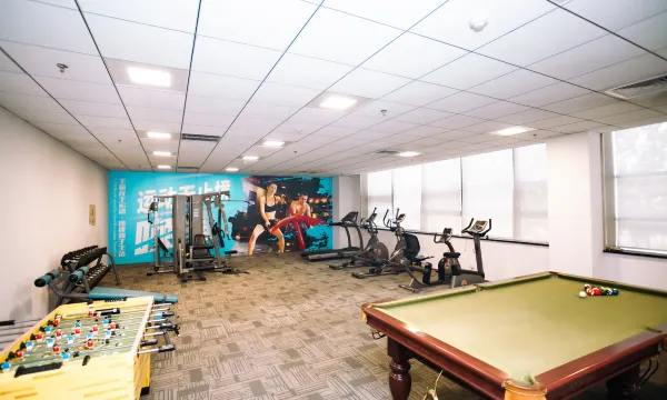 设施:酒店一楼有儿童乐园和健身房,健身房里还有台球桌。