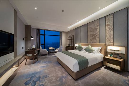 五星级酒店,服务很好,前台的姗姗很友好亲切,有问必答,回复速度也很快。环境很好,房间也很舒服,窗外可以看到山河田园。一楼火锅餐厅性价比很高,顶楼环形餐厅高档大气,早餐十分丰盛。整体来说是难得的高性价比的五星酒店,地点也很便利。