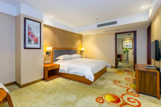 房间很宽敞,又大落地窗,床上用品也很干净,房间有免费WiFi,免费矿泉水,酒店有免费停车场,设施齐全,服务态度很热情,值得推荐。