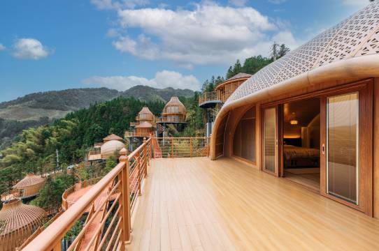 服务很周到,因为不是周末房间有空余,贴心滴给我们升级了裸心别墅,树屋的体验太好玩,白天看山景晚上看星空,早餐也很丰盛还是送餐到户。