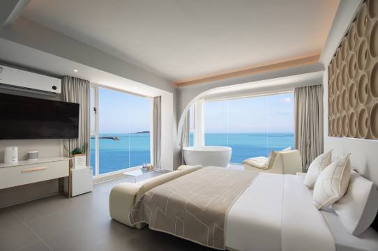 民宿风格简约时尚简约风,配有咖啡厅,餐饮,酒吧,无边泳池和一线绝美海景为您带来舒适,休闲的度假体验。