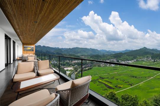 酒店在半山腰上风景真的绝美 因为定的山景房走拢大堂我一看田园景色真的超级美 就问这边属于什么房 前台告知是田园房我就问能不能帮我调整 前台很爽快的答应帮我两间房都调整成田园房 景色真的很美 房间整体不错 唯一不足就是虫子真的太多了 虽然在山上能理解但还是太多了希望加强处理 酒店服务态度都还不错 早餐煮的粉很好吃 就是自驾来的朋友到停车场停车以后要找一下去前台的楼 有一个指示牌要坐电梯上二楼 屋顶还有一个泳池 环境算很不错了