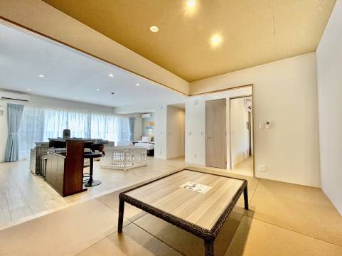 房间巨大,也很新。进门必须拖鞋。客厅两张床,还有独立的一个房间2张床,另外榻榻米也可以铺床,至少可以住8个人。可以自己煮饭吃,有餐具、锅具,调料需自备。