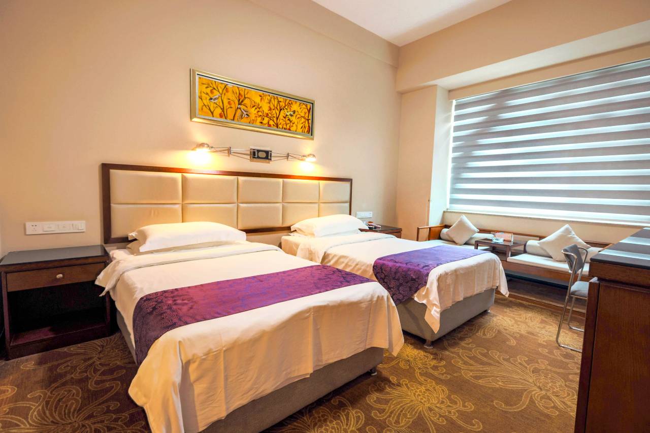 宾馆客房干净整洁,房内提供24小时热水、洗漱用品等,为宾客提供便捷、轻松的住宿体验。