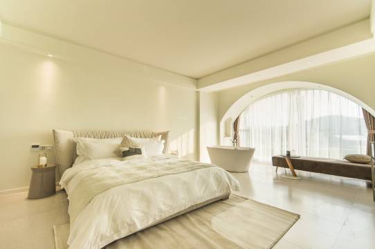 民宿共有一栋主楼、2套独栋别墅(配套有户外私人花园及恒温泡池)、共有客房三十余套房源,民宿配套有中餐厅(以及四个豪华中餐包厢)甜品烘焙作坊、天台清吧、书吧,可容纳**80人的多功能专业会议室,无边泳池,约20亩池塘(可垂钓)、小溪、生态菜园、亲水平台、大草坪、环线漫步道、儿童室内外乐园、烧烤池等配套、7个户外公共花园恒温泡池。客房内部设计简洁却不失品质,客房宽敞明亮、干净卫生,配套高品质的洗护泳池和舒适的亲肤棉织品(浴巾,毛巾,手巾),高级软装,提供24小时热水、冷暖空调,无线WiFi,部分房型拥有浴缸,(所有客房没有配置电视),户外阳台等休闲设施。