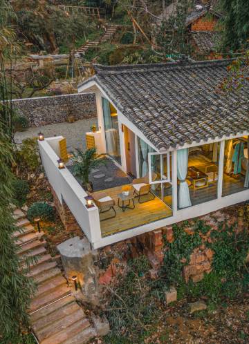 超预期,景色超好,一个房间是一个单独的小楼,房间干净卫生,装修风格非常独特浪漫,晚上在山上也很安静,当天有太阳,冬天喝茶晒太阳太爽了。早上的菜也特别好吃。