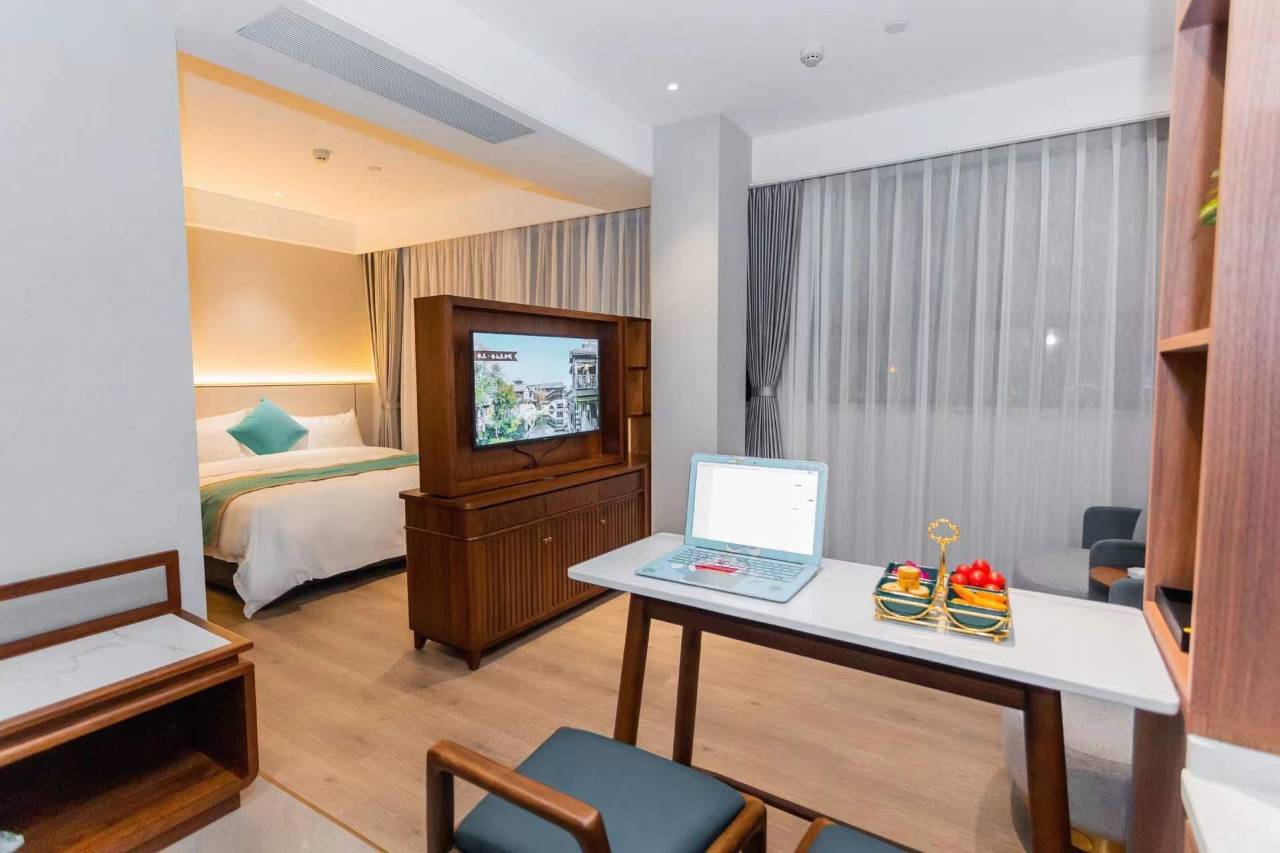 房间宽敞,设施比较完善,卫生良好,环境不错,挺安静,距离古城等景点比较近,服务热情周到,早餐厅明亮干净卫生,品种很丰富,有地方特色,菜煎饼味道不错,停车方便,一点小遗憾,房间酒店介绍上有一次性自助用品,但前台个别自助用品缺失,如眼镜布等,还是要及时补上