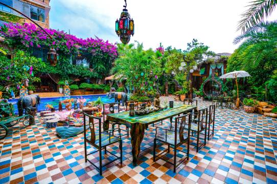 但是,在莽山东门最近的一六镇发现的这个宝藏级民宿却让我非常惊喜,这里没有商业味道和刻意设计讨好客人的修饰,但处处用心的布置,充满异域风情的院落里散发的那种别致的情调勾起我的很多好奇,