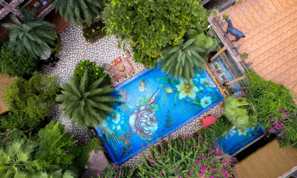 不小心就进了东南亚的感觉,名宿的服务很好,细节做得很到位,园林景观让人感觉置身东南亚热带景区里,房间有温泉泡池,可以到楼下大池子泡也可以在房间😊距离莽山五指峰游玩半小时车程,比较方便!