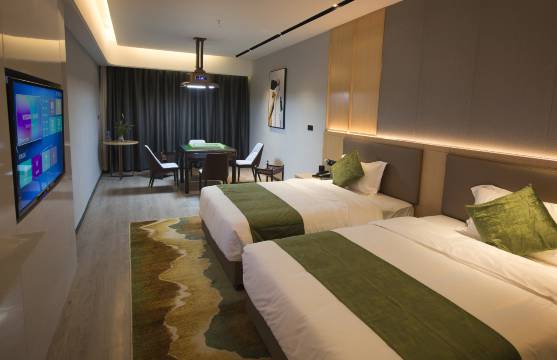 酒店智能灯光语音、人脸识别开门、智能机器人送货、电动窗帘、智能马桶、手机电视投屏、语音换台等智能轻松超控。 多种风格相异注重细节设计的特色客房,配套智能的设施与恰到好处的热情款待,定能给您带来舒适、自然、时尚的欣喜体验。