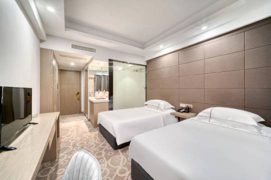 酒店客房现代简约,配套设施完善,服务细致,让您享受舒适的住宿体验。
