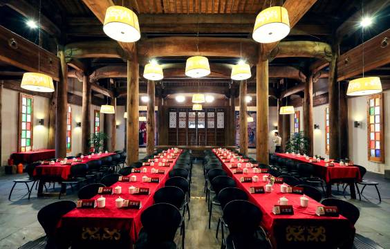 酒店位于宏村景区外、域见秀里·水镇景区内,毗邻赛金花故居。