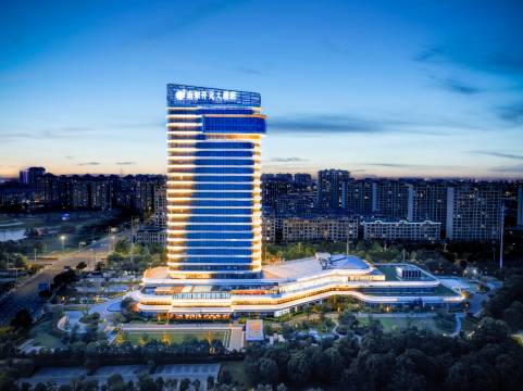 酒店由江西南崇集团于2020年三月份开始斥资3.8亿元人民币开发建设,坐落于明光市迎宾公园内。帆船式的建筑设计、轻奢匠心打造,总高27层,总建筑面积约4万平方米。拥有各类豪华客房211间(套)、自助餐厅、无柱千人宴会厅、各类规格的会议室、多功能厅,集商务、会议、餐饮、休闲于一体的多功能酒店。酒店地理位置优越、环境绝美、交通便利,设计灵感汲取明光的历史文化、优美意境, 以自然美与人文美有机的结合。是您商务公干、会议会展、休闲度假的必选。