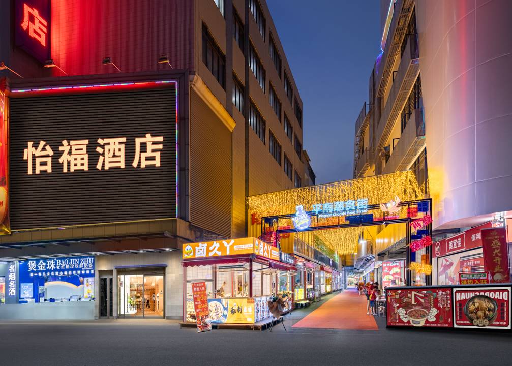 怡福酒店的位置真的很好,商业气氛也浓。左边是台球 网吧棋牌,右边有超市,味小勺等?昆港夜市平西步行街约500米左右。地铁300左右。河边散步有约500米,在河边散步,感受大自然的温柔与宁静,仿佛整个世界都慢了下来,心情也变得愉悦。酒店格局也很好,有免费停车场,进出都方便。服务很好。卫生很干净。我是女生,有点洁癖。对别人用过东西有点反感。怡福酒店全部满足了我个人需要?杯子拖鞋浴巾面巾全是一次性。非常好!特别好