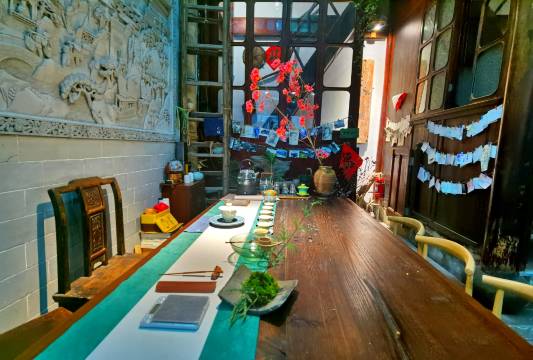 有一种理想的小幸福叫市井生活。一斗烟,一壶茶,一篓鱼,一局对,一幅字画,一曲琴声,两三好友,把酒言欢。书屋静阅、品茗会友。浅酌慢品,任尘世浮华。这里地理位置优越,交通便利,同时拥有完善的设施设备,优质的服务,您若清风徐来,客栈在这里,为您盛开。