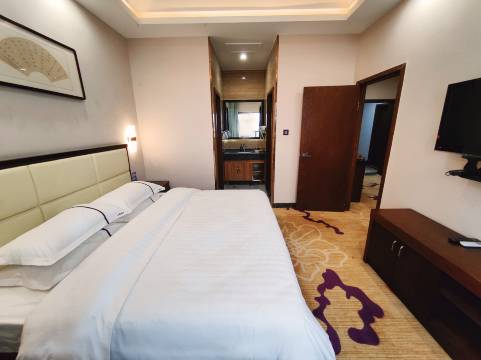 酒店大气上档次,工作人员热情耐心,房间干净整洁。酒店对面有个大型超市,吃饭购物很便利。楼下就是马路,出行超方便。