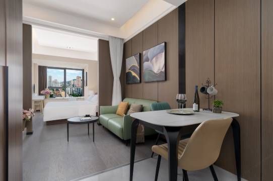 酒店立志打造精致小众的高端酒店品牌,致力于为旅途中的您构筑舒适的 “第二个家”。酒店地理位置得天独厚,坐落于沙坪坝站附近。周边交通网络纵横交错,轨道交通环线沙坪坝站近在咫尺,其呈南北走向,北接沙正街站,南接天星桥站 。步行片刻即可抵达,无缝衔接城市各处。车站用地南端紧邻站东路与天陈路的交叉口,东侧便是沙坪坝区繁华的三峡广场地段,购物、娱乐、美食一应俱全;西侧为重庆师范大学,人文气息浓厚。东南方正在改造的沙坪坝火车站综合交通枢纽,也将为您的出行提供更多便利。步入公寓,全屋采用轻奢高级配置,尽显高雅格调。全幅玻璃窗设计,不仅让充足的自然光线倾洒而入,更将城市的繁华景致或宁静街景引入室内,为高端商旅人士营造出雅致且舒适的休息空间 。每间客房皆配备设施完备的厨房,无论是简单的早餐烹饪,还是一展厨艺制作丰盛佳肴,都能轻松实现。智能化家居和家用电器的运用,为您带来便捷的现代生活体验,只需轻轻一按,即可掌控房间的温度、灯光等。高品质的客用物品,从柔软的床品到精致的洗浴用品,每一处细节都经过精心考量,只为给您带来舒适。意式轻奢定制家具贯穿其中,线条流畅、工艺精湛,无论是商务居住还是旅行下榻,都能让您置身于豪华优雅的环境中,身心得到充分放松。公寓凭借独特新颖的设计、高品质的设施以及贴心周到的服务,为您洗去旅途的疲惫,为您带来一场完美的旅途体验。选择费公寓,开启一段非凡之旅 。