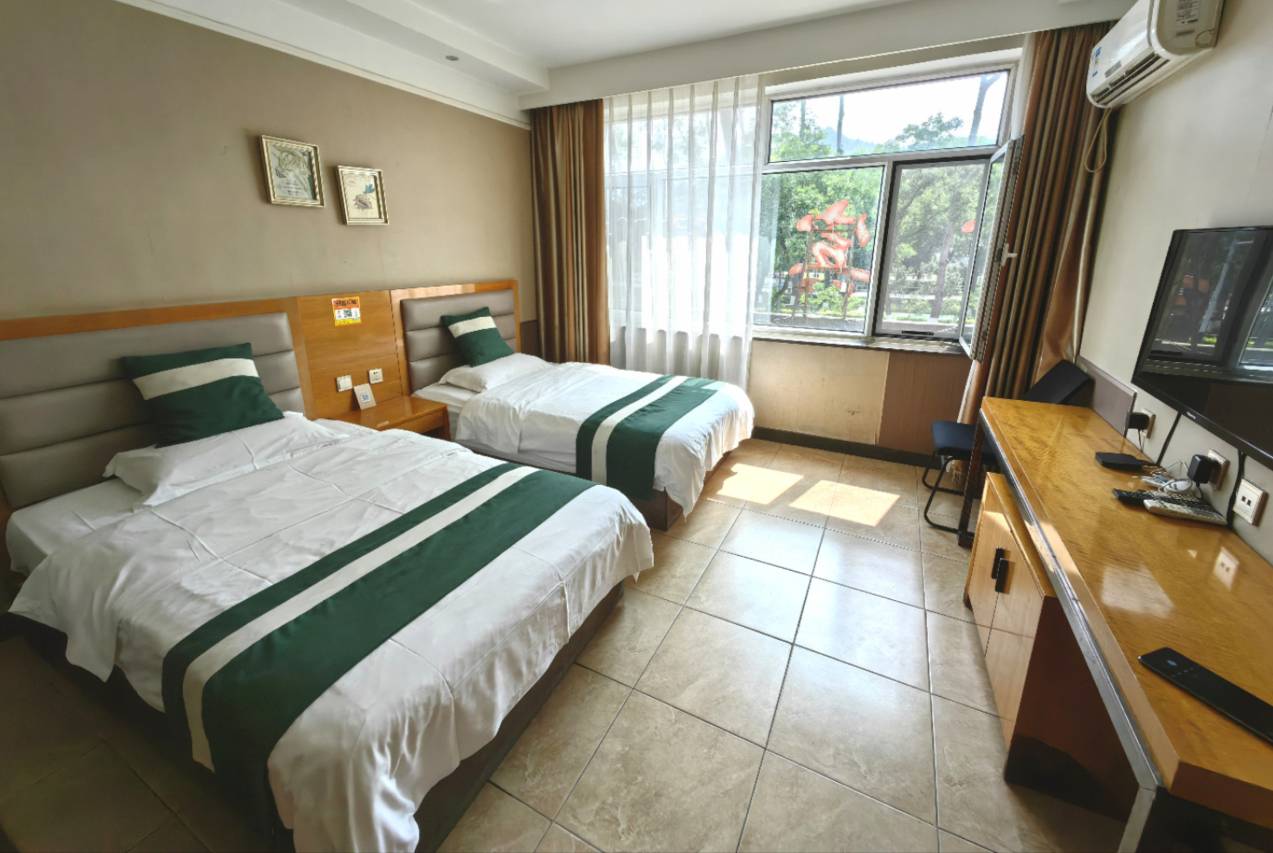 太好了,这里离避暑山庄非常近,步行就能走到,特别是在周边停车全部满员的情况下,这里有停车位,服务员免费升级房间,一百多元住的是山景房,早上躺着看日出,窗外有山有水。