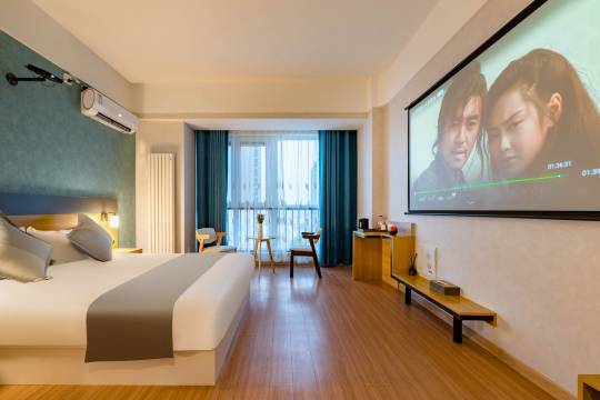 性价比很高,交通也方便,完全激发起我出门的欲望,房间很大,投影仪非常好,开灯也不影响画质,幕布非常大
