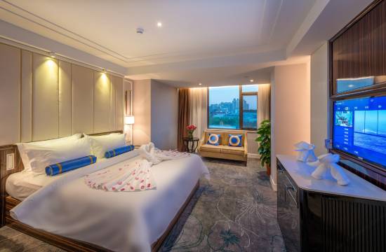 前台小周哥服务热情周到,给升级了江景房非常满意,房间干净卫生舒适宽敞,景观不错正对着江,晚上看灯饰非常漂亮,位置也很好,出门口过马路就是江边了值得推荐👍