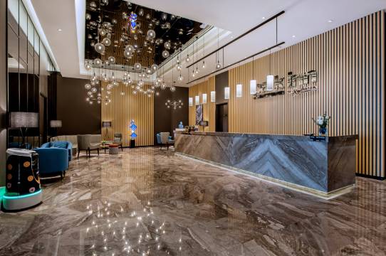 酒店非常棒,出行方便,走200米就是地铁口,三站路就到环球影城。卫生干净,携程免费升级了亲子套房,很宽敞,床很大都是1.35米的。房间的挂耳咖啡很赞很好喝。前台和服务员态度好,还让机器人客服送了早餐。周边也有吃的,特别是隔壁的京禧餐厅的京涮和烤鸭,实惠又好吃。