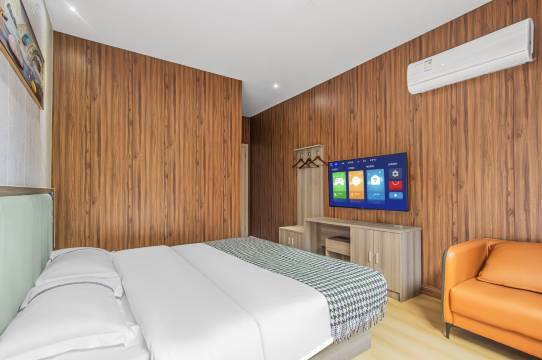 酒店休闲舒适办公,配备休闲桌椅。 简约风格,房间大窗采光好,卫生间配有强劲风力吹风机。 酒店对面就是时代广场步行街,烧烤小吃奶茶,各种美食满足您的味蕾。 距离双桥公园约150米。距离龙水湖度假区约9.8公里(车程约14分钟)。距离双桥汽车站约1.1公里(车程约3分钟)。酒店房间独立式WIFI,网络更加迅速流畅,速热淋浴,让您轻松去掉疲劳,细致的服务,让您获得轻奢享受!酒店期待您的到来!
