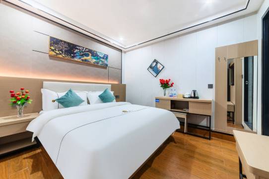 酒店地理位置很好,附近逛街很方便,吃喝玩乐啥都有,前台小姐姐服务态度好,很热心告诉我们哪里比较好玩的,卫生也很满意,还有洗衣房,下次还来这里住!
