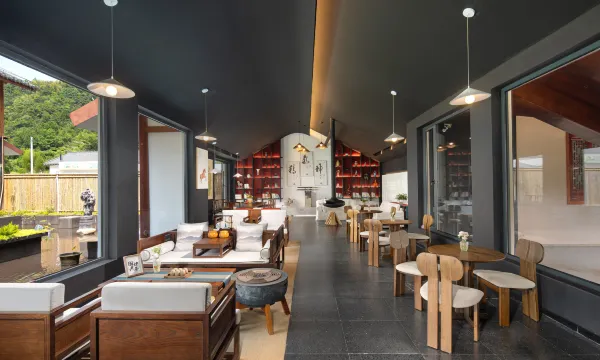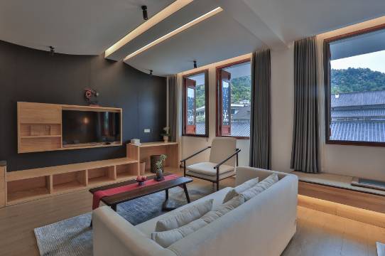房间很赞 设施都很新 安静放松 适合带家人出行 大山怀抱 特别舒服 夏天可以再去一次 冬天烟雨朦胧 整体建筑中式现代感浓厚 服务也很到位 到古镇走一走也就三分钟路程