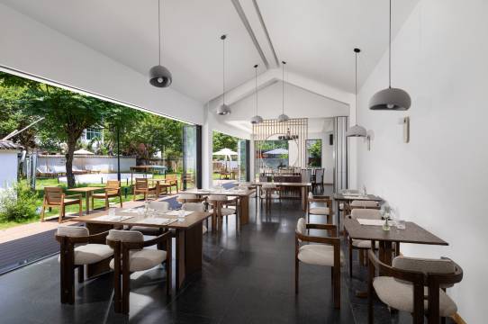 非常漂亮的民宿,每一帧都是一幅画。走出去5分钟就能玩水,桨板皮划艇都有。附近有个知音涧可以浅爬一下,我们工作日去的时候基本没啥人,狗子可以放开了跑,很是惬意。老板娘和工作人员都很热情,进出都热情招呼我们,住了两晚,每天早餐略有变化,第二天厨房阿姨现煮的面很好吃。晚上可以沿着溪流散步看星星,非常适合慢游。美中不足是如果洗澡时间长浴室下水比较慢会漫出来,其他都非常完美,还会再来!