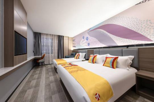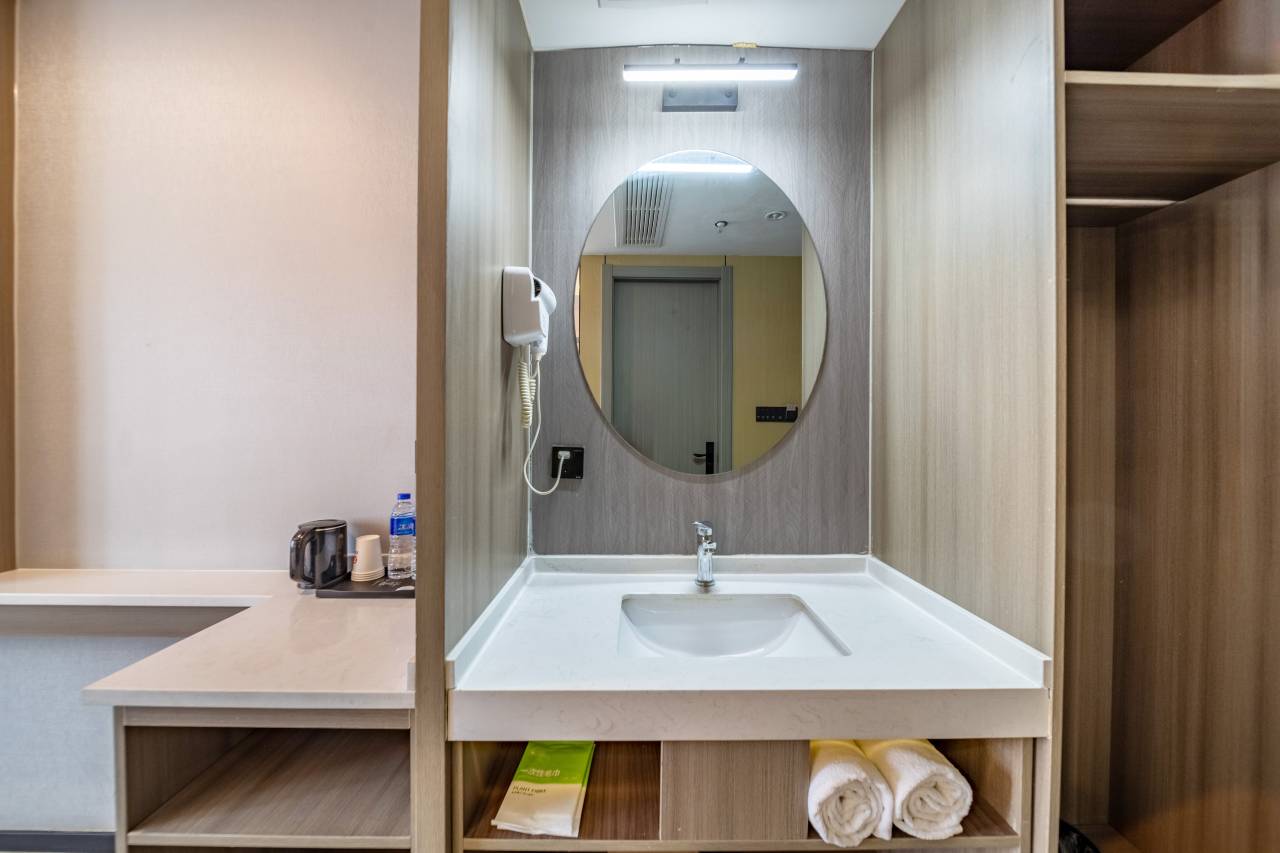 房间挺大的,很干净。东西也都很全,前台小哥哥小姐姐也很热情。定的双床房,住的很舒心。离地铁站很近,交通方便。附近有家超王记吃早饭味道也好。很满意的入住体验。