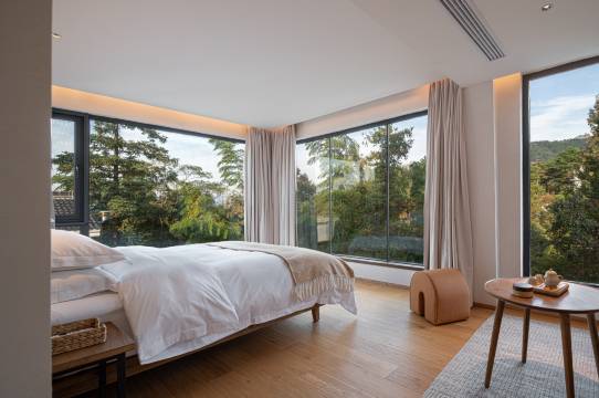 民宿客房各有特色。有视野超棒的全景房,雅致独立庭院房,大露台观景房,温馨亲子房。全系水系统地暖和空调,瑞士高端智能卫浴,超高星酒店品质床品,全手工实木家具,澳洲进口洗漱用品满足客户对品质生活的所有需求。
