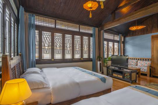 客房主体结构采用丽江纳西传统土木,添增隔音防震层段,传统中式实木与东南亚风格的禅意搭配,尽显匠心设计。院内WIFI全覆盖、室内采光充足、24小时热水、卧室电暖、加湿器一应俱全,洗漱用品和布草都是星级酒店标准。