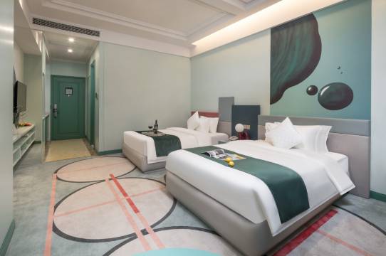 酒店为苏和盛集团旗下酒店版块的项目,总投资约六千万元。酒店诚邀梦想家著名设计师,根据江南太湖特点,集团主营产品和珍珠相结合。倾力打造一个时尚,风情,国潮酒店。酒店位于苏州市吴江区开平路,东临奥特莱斯购物广场,西面坐拥东太湖百里旖旎风光。东太湖音乐喷泉也近在咫尺。距离梦幻水世界及王焰温泉、奥特莱斯、万象汇、吾悦广场、爱琴海等购物广场约5-10分钟路程。周边娱乐、餐饮、文化多种多样,可以多方面满足您餐饮娱乐购物需求。