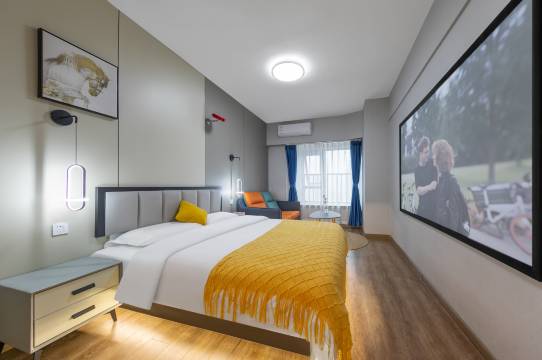 来这边出差,主要是相中一个距离近,交通方便,环境还不错,房间有投影,晚上看个电影啥的还是比较舒适的。