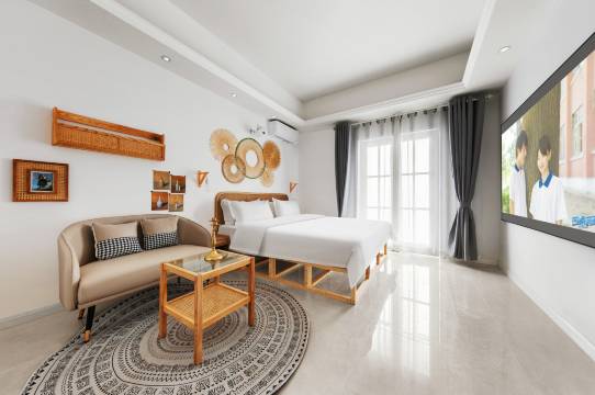 您选择,满足出差、办公、旅游等不同人群需求,房间内标配高清巨幕投影仪,休息时间可以放松心情身心愉悦的观影,同时还可以手机投屏满足各种需要。