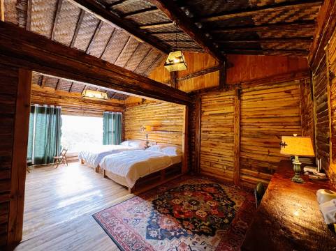 客栈环境超好,房间很大,水很热,小木屋很漂亮,也很安静。早上一睁开眼玻璃窗外就是大片的花海、远山,云雾缭绕仙境一般,真的不愧是神仙居住的地方。老板人也很好,给我们准备了雨伞暖风机,推荐了很多好玩的地方。晚上在客栈的火塘烤火围炉煮茶打扑克喝酒,很不错,推荐。