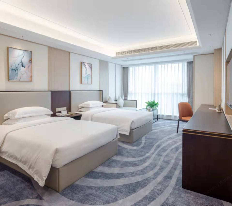 房间不错。总体好评。前台小姐姐很温柔有礼,房间挺新的,空间总体舒适,进门有个会客小厅(两个沙发,还有盆鲜活的小吊兰绿植),还够空间为大孩子加了个床🛏。再进有小书房,一排大书柜,长条的办公桌办公也不错。再进就是里间大床。房间两边有大窗户景观无遮挡,还能望到不远的浙大紫金港校区。有地下停车场。若洗手间和沐浴间再大一点就更舒适了(不过若再大的话,可能就不是这个价位了。)