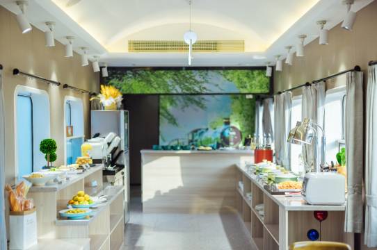 很有意思的绿皮车酒店,酒店人员服务特别好,酒店环境很好。小朋友的欢乐聚集地。早餐虽然种类有点少。但样样好吃,非常满意!!带小朋友的话一定要来体验一次,特别推荐。