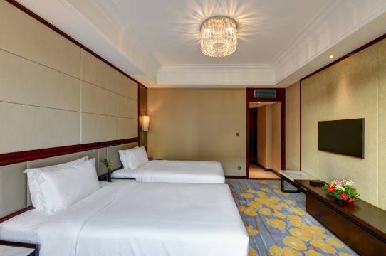 房间宽敞明亮,床铺干净卫生舒服舒适,空调暖和安静,服务周到热情,大堂大气明亮,早餐非常丰富,住的非常满