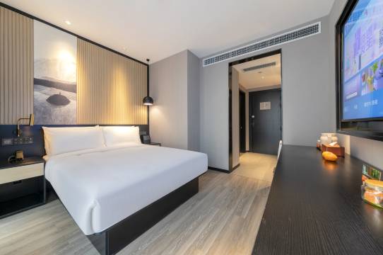 房间很大很干净,过年期间人不算多,很安静,适合我这个睡眠不好的人,且全屋小度智能控制,深得我家小朋友的心。后边就是会展中心,如果参展之类的,可作为首选。距离景点稍稍有点远,好在距离地铁站出口挺近的,转个弯就到。距离大悦城步行可及,散个步就可解决吃饭问题。最重要的是,前台小姐姐很nice,帮忙升级了房型,还赠送了早餐。唯一的缺点就是可能是过年的缘故,早餐种类不多。