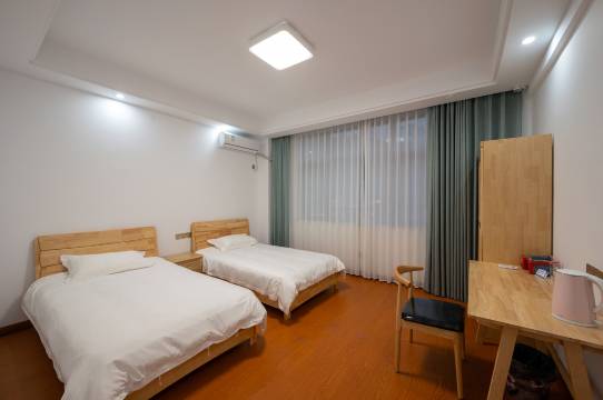 房间很大,很干净,价格划算,套房有两个房间,两张大床。很适合亲子或者朋友一起住,老板阿姨人很好,晚上找不到路,还特地出来接,第二天早上还做了早饭,还送我们去景点。