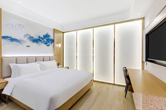服务很好,很贴心,前台小姐姐的服务很专业,很热情。白天出去回来之后房间也帮我收拾的很干净,保洁阿姨人也很好,房间的空间很大。早上拉开窗帘,阳光就能照射进来,晚上睡觉也比较安静。经常在外面出差,对于住宿的要求还挺高的,这一家性价比比较高,身边的同事都会推荐给他们,每次来马鞍山都住。