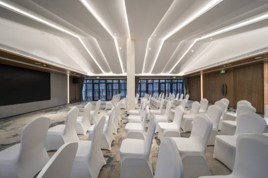 酒店整体风格汲取旧时水乡民居意境,以现代极简手法删繁,追求谦逊克制的留 白之美。寥寥数笔,便将秀丽江南的美好意象融入到芦席汇的每一个晨昏昼夜。目之所及,皆是 值得收藏的美好生活图景。酒店由“中国旅游集团20强”,“中国服务奖”荣誉获得者开元旅业集团设计,建设,持有。酒店完美契合家庭出游的需求,温柔色感柔化空间肌理,舒适配 色安定心绪,柔和的曲线与趣味性的玩偶错落有致,玩趣十足。 酒店配有1200余平室内儿童主题乐园一个,园内弹性立体迷宫、超大海洋球池、蹦床空间、 互动投影等多样游乐设施,让每一位孩童都能轻松释放。酒店另拥有中小型会议室3个,可满足不同 标准会议需求。闹中取静,枕水而眠,芦席汇开元观堂带您找寻宁静、安然、风雅、美好的度假 生活。
