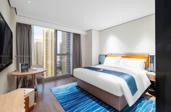 高空湖景搭配全景落地窗,视野开阔又治愈,白天看湖景、傍晚赏晚霞,氛围感绝了。房间干净整洁、一尘不染,床品舒适,住着特别安心。