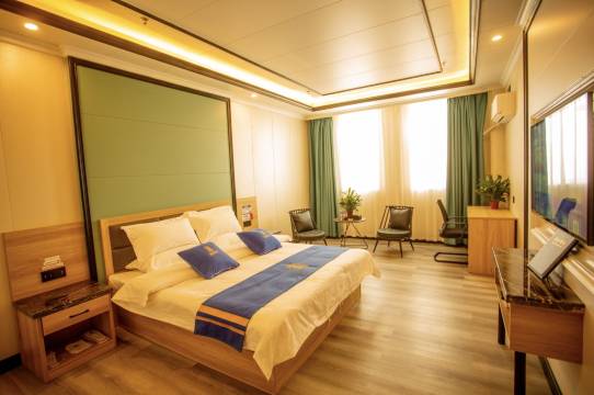 房间感觉宽敞明亮,床上用品干净卫生,摆放整洁整齐,房间没有异味,住起来很舒适,给人一种宾至如归的感觉。