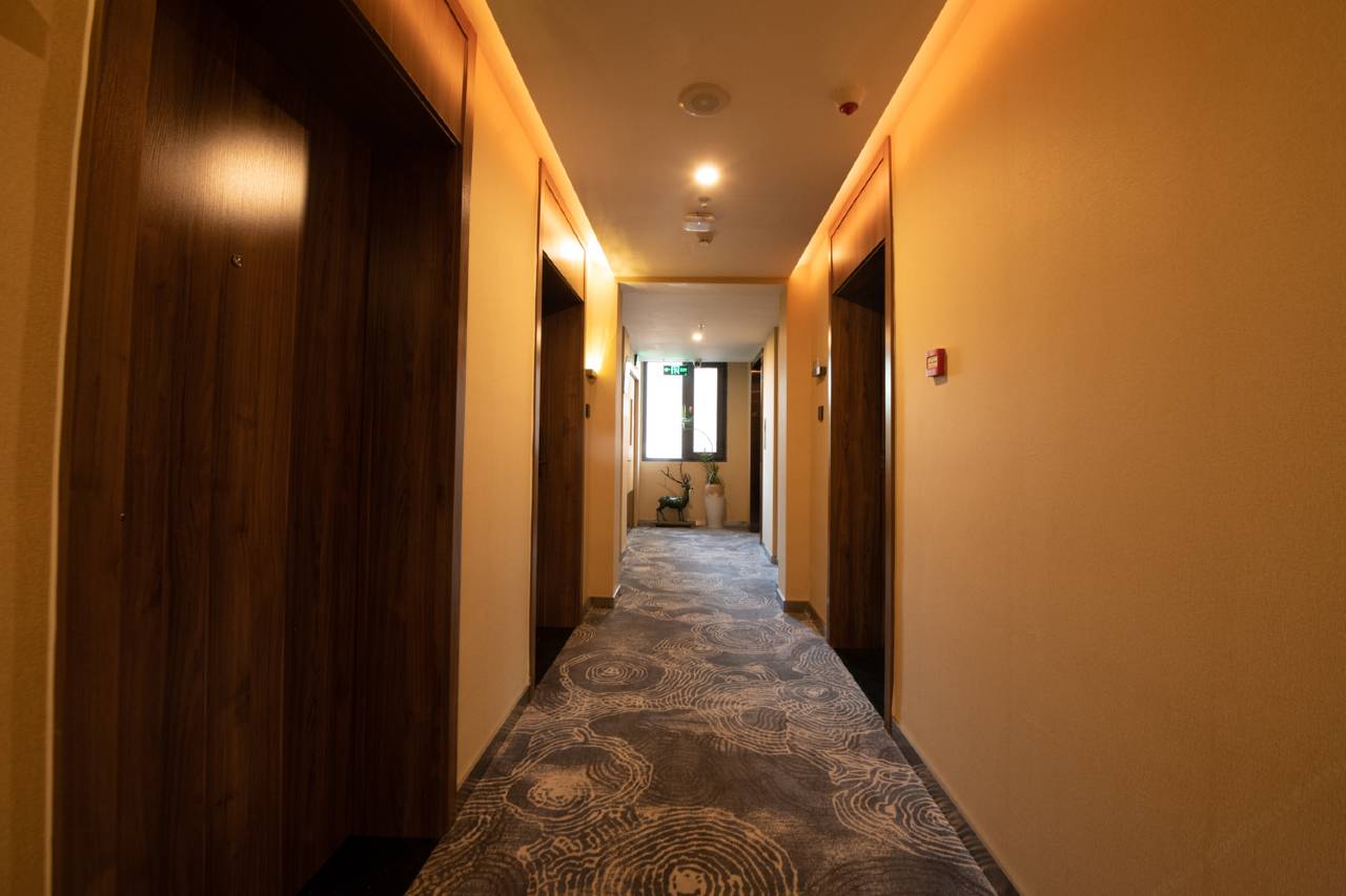 这是一家集餐饮、住宿于一体的中高端商务酒店,还配备了现代化智能客控语音系统,可以完全实现脱离双手语音控制,比如:窗帘、房间照明灯、电视的开、关控制,及空调的温度调节,另外,酒店配备了智能马桶,可以实现马桶座圈三档加热,水温调节,自动冲洗、烘干等,为您带来创新科技感的舒适体验。