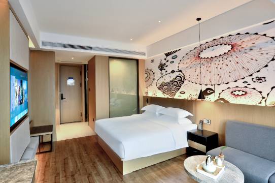房间比图片还干净,床品软乎乎的,躺下没多久就睡着了,隔音也很好,完全没听到走廊的声音。最惊喜的是机器人送餐,中午不想出门点了外卖,它居然能精准找到我的房间,到门口还会温柔提示,取餐特别方便,科技感满满又很实用。