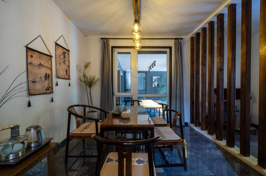 公共区域和房间的设计都特别的赞,尤其是下雨的时候有种江南烟雨的感觉,当晚问我们第二天早上要不要吃早餐我们说要吃但是没起来,但是还是给我们留了饭吃特别有家的感觉!!!!!我的小黑落在桌子上店主姐姐还给我发快递过来特别感动!!!必须好评支持一下!!! ps:只有院子里一角和我们晚上偷偷在阳台上吃烧烤的照片 最后宝贝已回家!!!