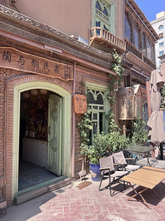 陶与铜民宿座落于古城内盖孜尼气巷,整体房间装修清新明亮,给人一种舒畅的感觉,房间内卫生干净利落,独立卫生间内设备齐全,洗漱用品也是高端。在民宿居住的可以搭伙一起在民宿门口吃个火锅,唱个歌(也可以自己做饭尽显自己的厨艺,民宿自带厨房,调味料齐全。)。闲暇之余还可以坐在门口休闲区喝一杯,静赏美景,古城特色表演“西域公主选朗”节目也在民宿对面准时开演,不论在房间还是楼顶阳台都可以一览无余。老板娘年轻漂亮,为人亲和,这也算民宿的一道靓丽景色!陶与铜民宿值得推荐给各位旅友来居住。