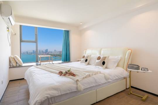 房间很漂亮,拉开窗帘就是大海,住的心情很美丽,宝宝特开心,出门10分钟就能到海边,开车不用5公里就是吾悦广场之类的各种美食娱乐区,下次还住这里,下次要体验滑梯房